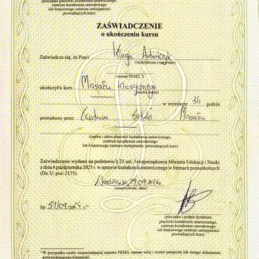 Nauczycielka jogi i praktyk masaży, szkoleniowiec, z akademickim wykształceniem pedagogicznym i muzycznym. Zdobyła 3 miejsce w masażu Freestyle Zachód na Mistrzostwach Polski w Masażu, 1 miejsce w Masażu Azjatyckim i 1 miejsce generalne na Mistrzostwach Masażu w Marbelli oraz była finalistką Mistrzostw Europy w Paryżu w ramach nagrody specjalnej za Empatię. Aktualnie pogłębia swoją wiedzę studiując psychologię kliniczną - realizuje pracę badawczą dotyczącą stanów transcendentalnych i medytacji.